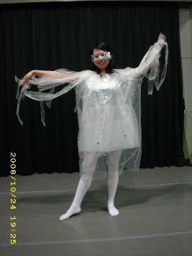 在過程中也是有爭執、不知所措的時候,但我們還是發揮了『彼此相愛,互相鼓勵』的精神辦到了。起初,真的懷疑在短短的時間內,我們能達到鴨鴨給我們的任務嗎?當中,因為忘記去測量每個人的手軸的寬度,而導致手環完成後,有人帶不下的問題,真的很傻眼;還有,因為布會脫線需要燒過,雖然我覺得很費工,但我們還是一起完成了。在製作黑撒蛋的道具時,有人把漆皮布四片縫在一起,最後發現手起水泡。在做冰雪女王的道具時,被保麗龍膠弄的雙手快要黏在一塊的感覺,回想起來這也是一個很棒的回憶。最最困難的還是鞋子的部份,布很硬非常的不好縫,在過程中,我覺得其實每個人都『愛美上身了』!!