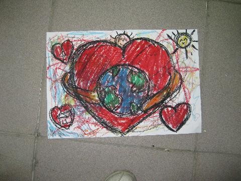但是,拿到畫的當下我並沒有哭,因為我是副小組長,我覺得我不可以把我的情緒帶給我的隊員,我馬上把圖畫紙翻到背面,重新畫一個一樣的圖畫,但是當我畫完時,我的腦海裡閃過了一個念頭,我總不可能遇到了這些事情之後,就先去自殺然後再活過來當作一切都沒有發生過吧!這是不可能的事情!所以,我又把圖畫指翻回來原本被破壞的那一面,在上面畫一個大大的愛心,畫上我自己用愛心擁抱地球,突然之間,我覺得曾經看是傷害的線條頓時之間變美了,它不像是破壞的線條,反而像是我用愛擁抱地球的背景,是彩色的是美麗的。而且,最重要的是我知道我現在不是一個人,我有上帝的愛,我有像家人般的朋友們,我有一群不管我是傷心還是開心都可以相互陪伴、分享的好朋友!在我的解讀中,這些線條不但美麗而且都是我的成長經驗,或好或壞,或美或醜,它們都將是我未來夢想的祝福,因著這些經驗,面對相同需要的人,我才能有更貼近他們的同理心,因為,沒有經驗就沒有成長!