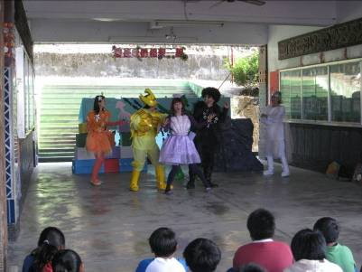 12/11星期五早上六點多上山帶完生命教育課程後,志工特別留下來協助高雄彩媽到部落演出的場地預備,接著又趕場到青山國小協助下午的演出,晚上整理剛剛收到的服裝和道具,同時還要處理學校社團評鑑的報告資料,直到午夜還有人還沒就寢。隔天,一早8點要參加心靈工作坊,到了中午又要趕去龍泉營區,協助聯電「愛」劇團演出,一天又在忙碌中過去了,晚上演出成員總算“全員幾乎”到齊了,第一次正式彩排就在露天廣場的黑夜天然幕下開始,我們排到晚上十點大家腿都痠了體力也不支了,尤其是臨危受命加入演出的志工鴨鴨(湘馨),發著高燒仍然賣力彩排,本來計劃彩排完要幫鴨鴨爸慶生,也因為鴨鴨排戲後昏睡不醒而取消,在這次重建的專案裡,鴨鴨每天工作都超過十二小時,還要不斷南北奔波協調大大小小相關事情,再強的意志力也無法支撐需要休息的身體。