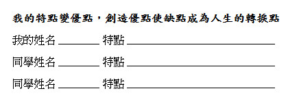 同學乙:「我以前都沒發現,原來我們班上有這麼多不同特點的人。」