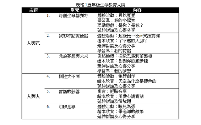 後記:這只是其中一堂課的紀實。如今,在台北市大安區的古亭國小的一、二、五、六年級,每學期都有二到十二堂課不等的生命教育課程,由一群熱愛生命,關心孩子的彩虹生命故事組志工帶領,讓孩子有機會思考「人與己」、「人與人」、「人與地」、「人與天」以及「青春無悔」等議題。那三、四年級的孩子呢?彩虹組的目標是希望能有更多志工投入,讓三、四年級將來也能全面性實施。
