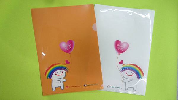 去年大家都有拿過白色的彩虹娃娃資料夾嗎?今年推出的是亮麗橘彩虹娃娃喔,請注意,是一人填一份問卷,不是老師和志工合填一份喔,一份問卷可換一個資料夾,問卷可到感恩活動網頁下載,快來兌換吧!!
